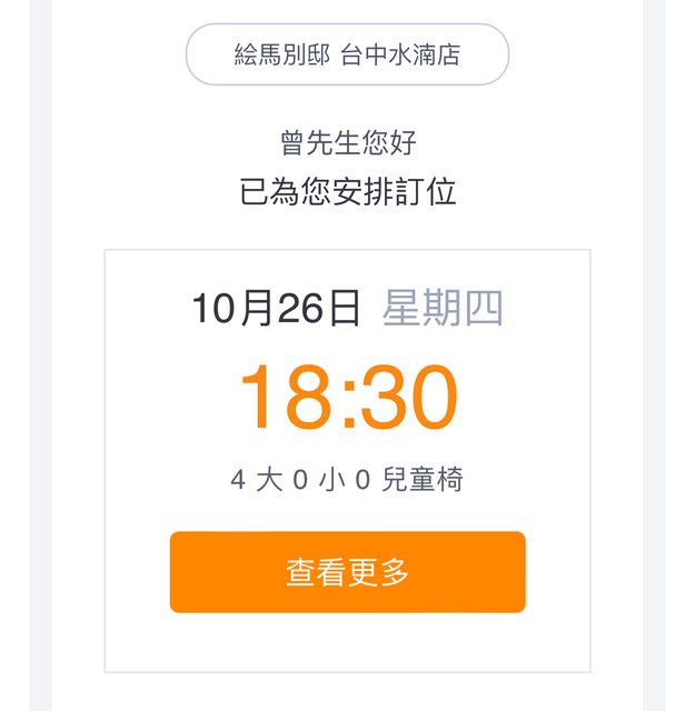 10/26 晚上 四個大人訂位