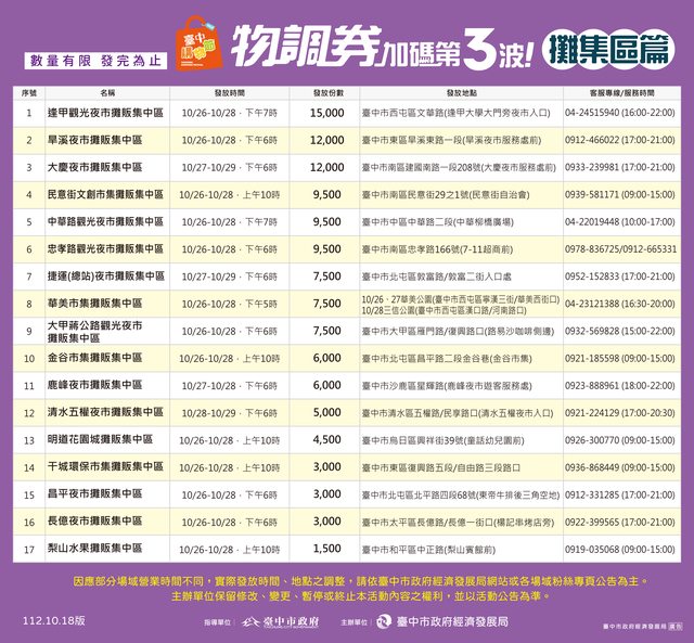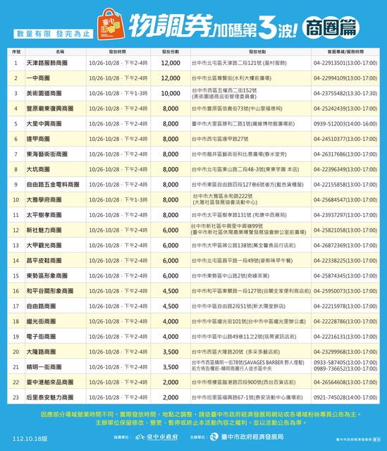 ,為擴大行銷宣傳2023臺中購物節,於購物節期間搭配辦理發放第三波物調券,總計發放45