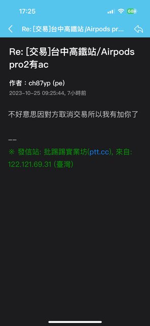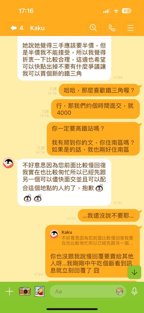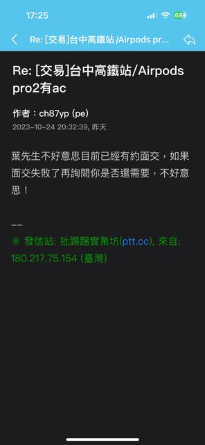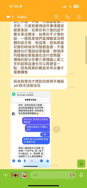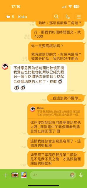 ch87yp已經跟其他人約交易了。後續疑似被封鎖不再回覆。