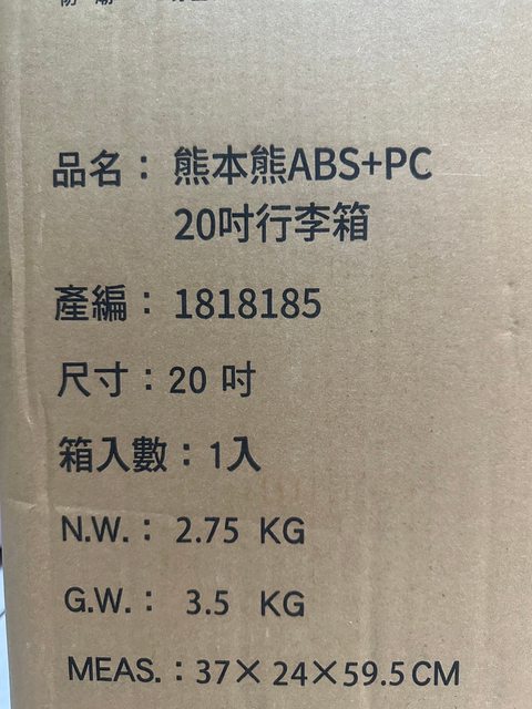 1.全新 熊本熊20吋ABS+PC行李箱 登機箱