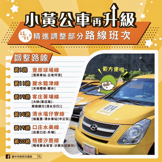 搭小黃公車注意了!中市11/1起調整部分路線班次交通更方便