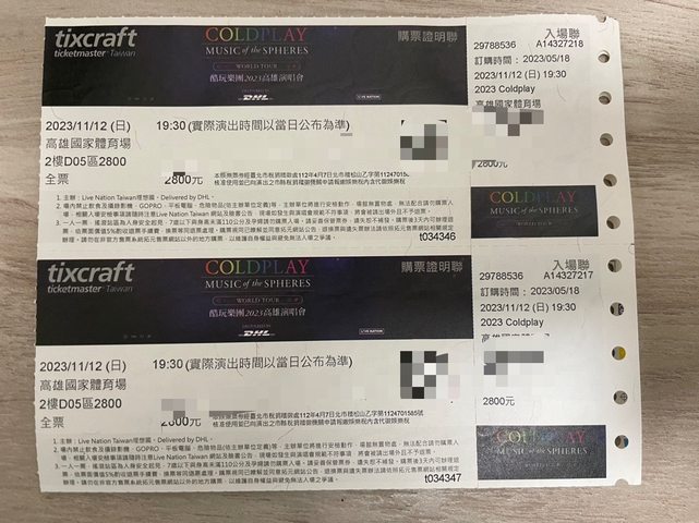 【座位】: 2800 2樓 D05,已拿到實體票