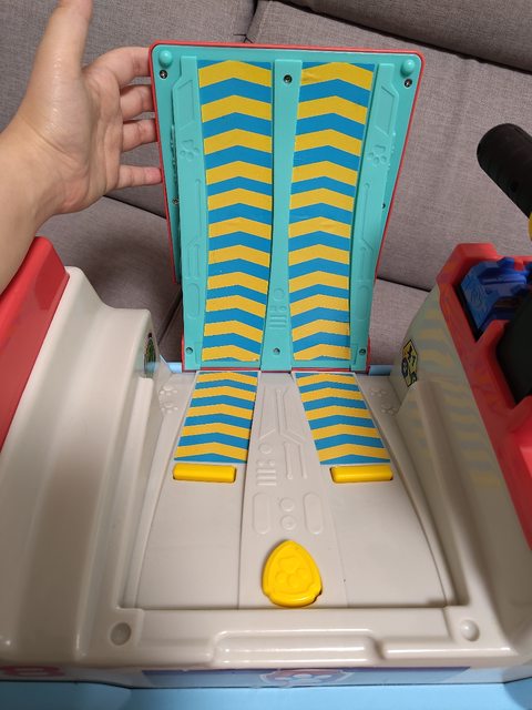只在室內玩,可以坐到三四歲,貼紙有些翹邊,附上毛毛和阿奇的車子,坐墊打開能變成