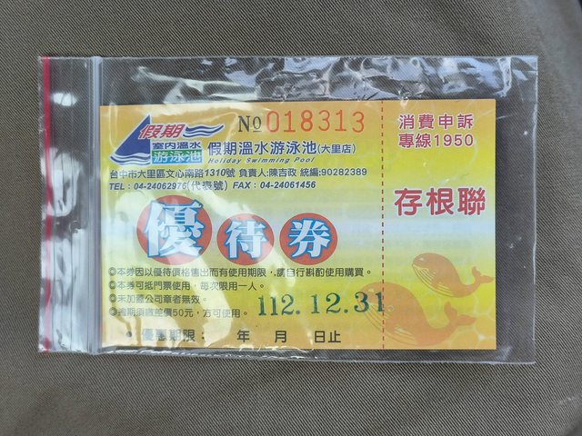 標題[商業] 大里假期溫水游泳池票券