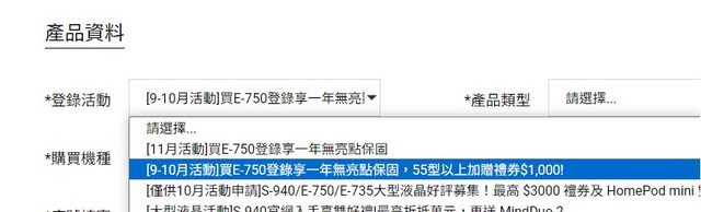 很新的電視,發票日期10/25,可以搭官網活動享一年無亮點+統一超商禮券$1,000(到
