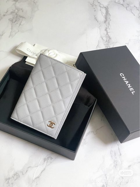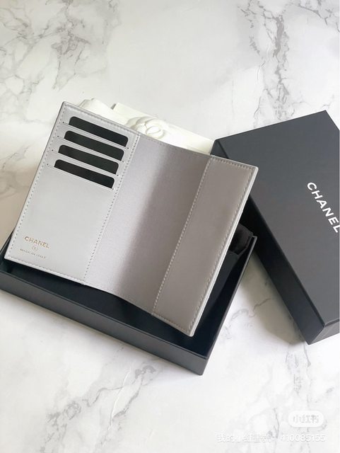 Chanel 23C 季節限定淺灰色荔枝牛皮護照套