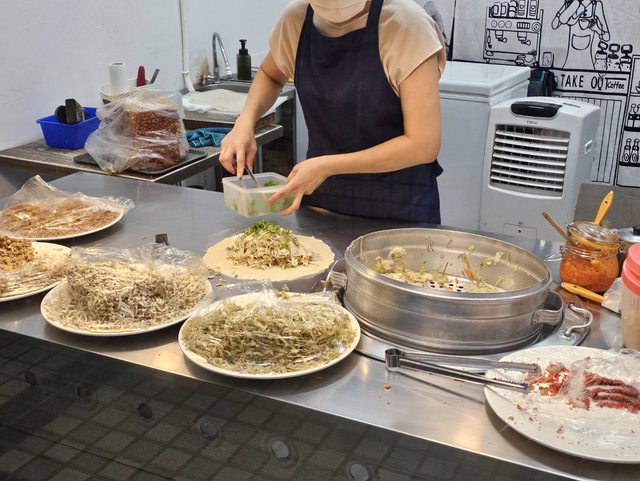 潤餅世家則是一般的潤餅加小辣 超級好吃! 而且料給超多!!