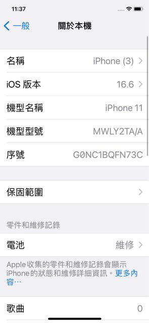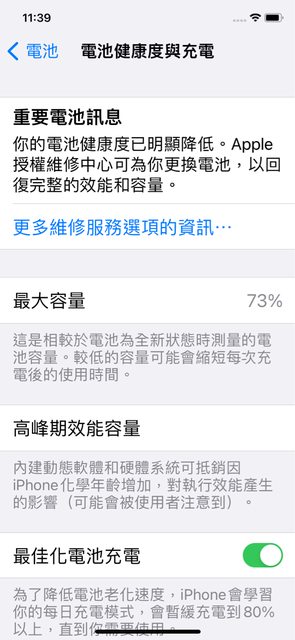 2.電池健康度73% 銀幕有刮傷