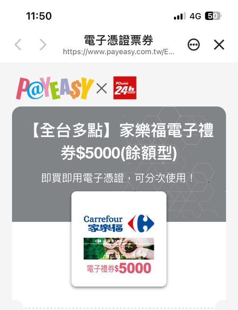 標題[交易] 虛擬 家樂福電子禮券5000 (91折)