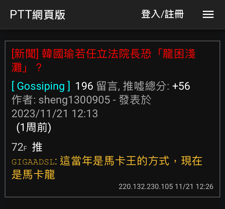 → lightwing : 好險我沒有投給韓國瑜和偽裝政治小白的GIGAADSL 12/01 16:33