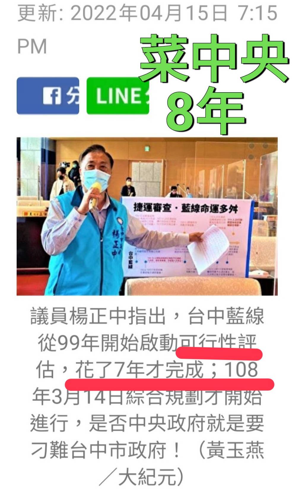 Taiwanwolf : 綠線延伸還說只能南北段二擇一,是想給盧下套挑起 12/05 19:24