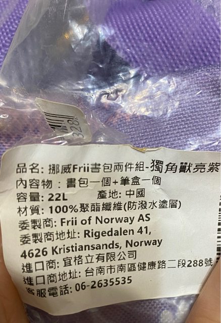 交易物品/金額/說明:挪威Frii新書包組合一個/售2000元 /