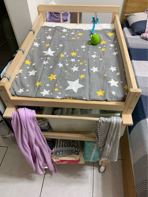 「高低可調實木尿布台」