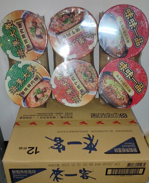 來一客鮮蝦魚板一箱(12碗)220元,有效期限2023.12.31(恰中)