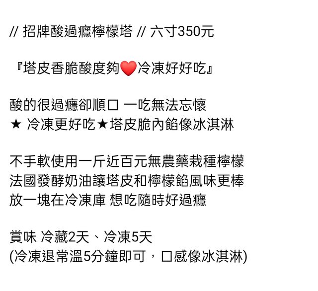 檸檬塔--真的很酸很好吃,每次合購都有固定板友要跟XD