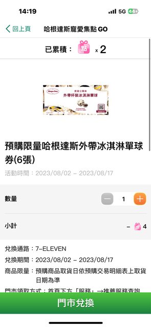 徵求這次7-11哈根點數2點
