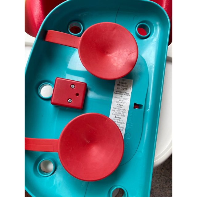 椅子底座有一些些小破洞,少了一朵花,其餘正常沒有龜裂,玩樂盤的吸盤也還在,顏色也很鮮艷!