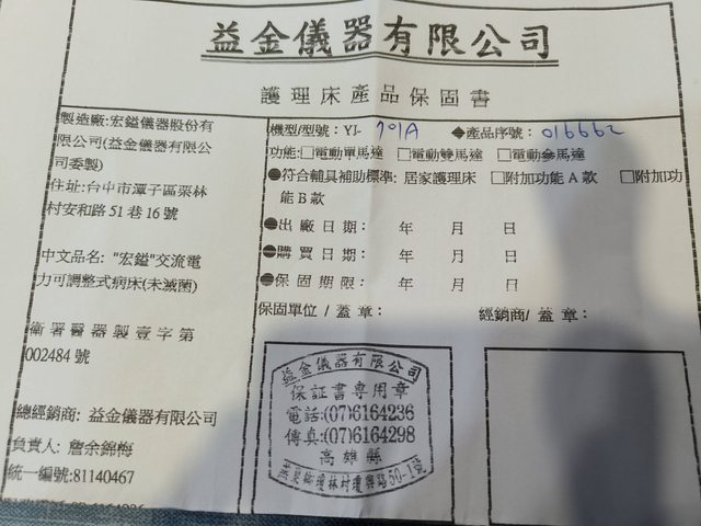 1. 電動床,自取,去年底買的