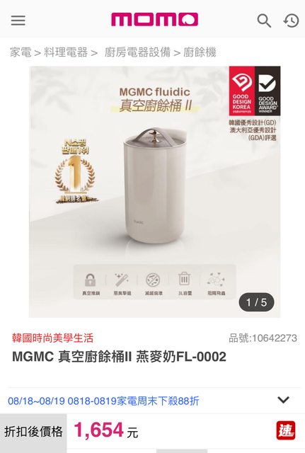 7.韓國MGMC 二代真空廚餘桶 (燕麥奶)