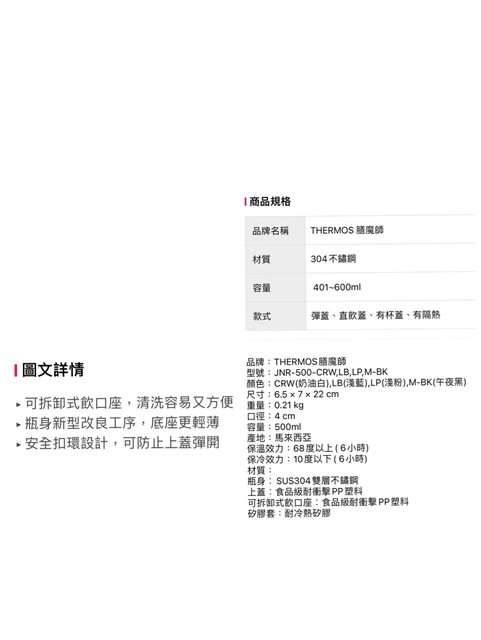 3:膳魔師彈蓋輕水瓶500ml(藍色、粉紅色)