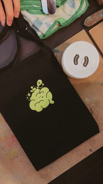 圖片是工作坊讓學生印刷的成品,販售的包包沒有圖案喔!