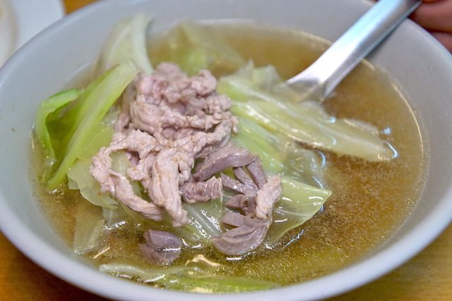 什錦湯,加了肉絲、下水以及白菜一起煮,湯底是類似羊肉店的清湯,喝起來帶著油脂香