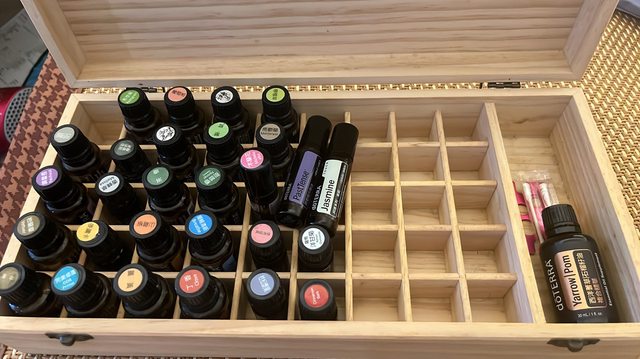 2. 約莫28瓶已使用的二手精油(效期內,含木盒) $1,000(含香峰草7分滿,2024/7月到期)
