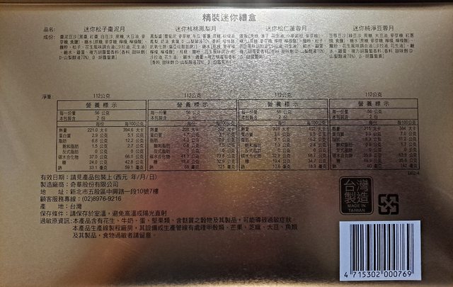 商品內容:迷你純淨豆蓉月x2、迷你核桃鳳梨月x2、迷你松子棗泥月x2、迷你松仁蓮蓉月