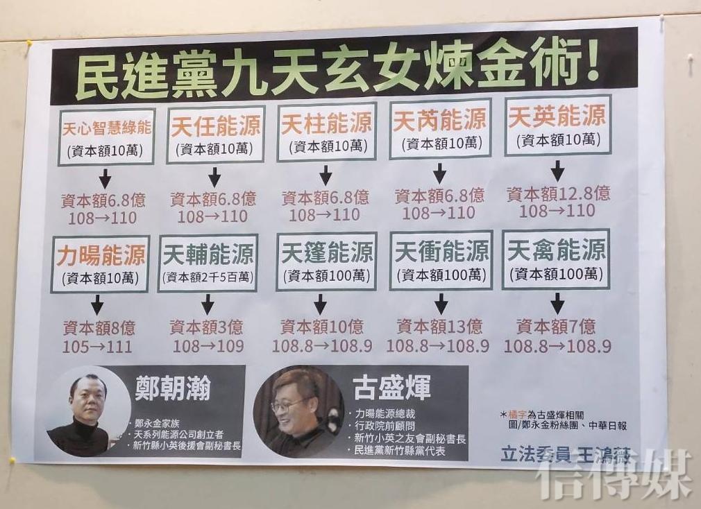 行政院前顧問力暘能源公司負責人古盛煇所持股的天心、天英、天柱、天任、天芮等5家