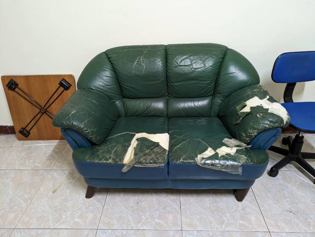 8. 綠沙發2張 (一張皮破了, 一張完好, 但兩張泡棉都是好的)
