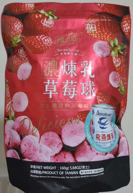 34. 濃煉乳草莓球夾鏈包160克有8包,一包售50元,有效期限2024/5/17