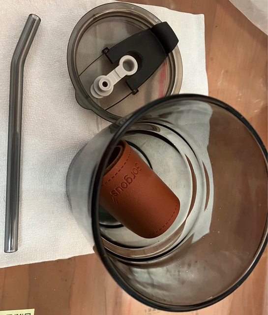 2.竹節復古皮革玻璃杯400ml