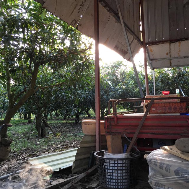 果園有搭建鐵皮屋可供住宿料理休息