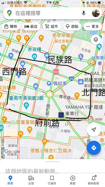 大概抓中心500公尺的話,可能極限的距離在民族-西門-府前-北門路這個圈圈,希望在這