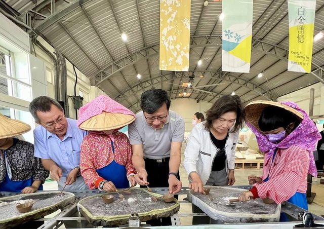 「白金鹽憶-台灣鹽業檔案特展」今天在台南七股鹽山開展,展期至明年7月31日;台鹽公