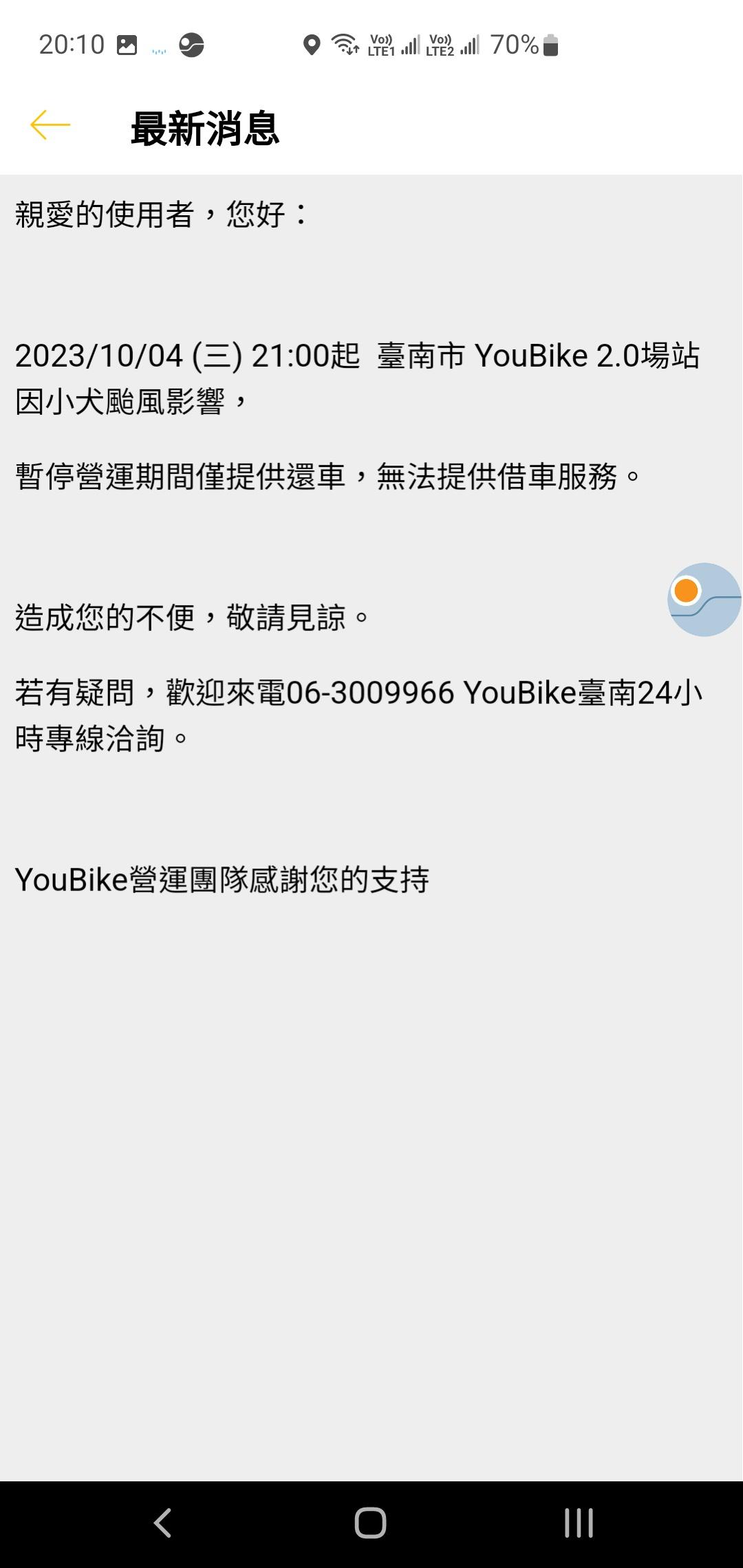 → Sheng98: YouBike南台灣粉絲團 也會公告 10/05 20:41