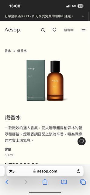 1.Aesop香水 售2500 (少噴/九分滿)