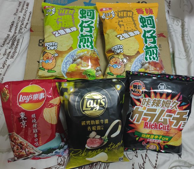 樂事洋芋片59.5克,松露28包 照燒4包 蚵仔煎,原味15包 辣味7包