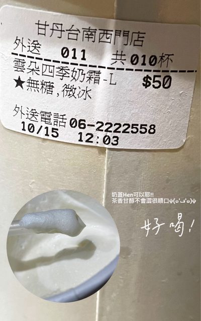 我喝四季春奶蓋無糖,他的茶很清香不會澀