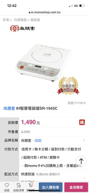 1. 尚朋堂電磁爐 附外盒 950元