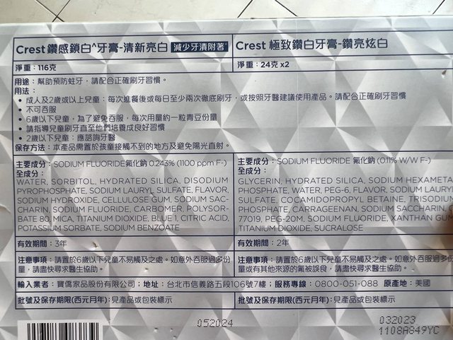 Crest亮白牙膏一盒,售50元