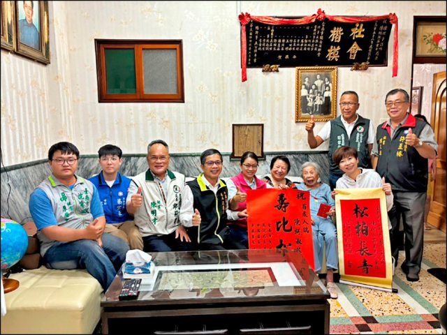 新營區十位百歲人瑞有洪林碧、顏莊潔蒸、李森霖、鄧蕉治、李明山、沈天德、朱汝根、
