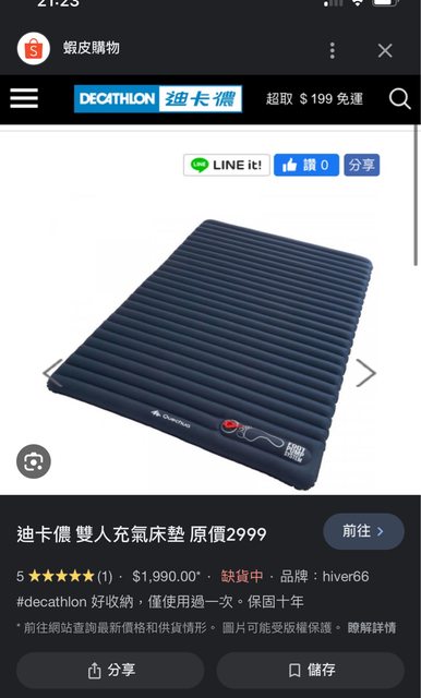 標題[交易] 迪卡儂雙人充氣床墊