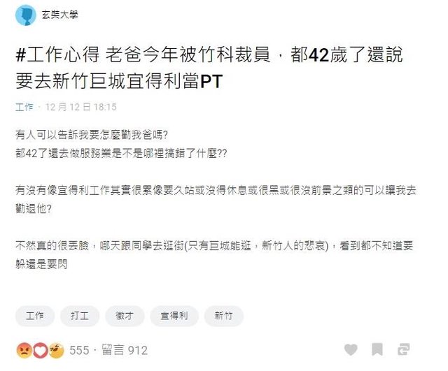 推 gugeegee : 玄奘大學XDDD好意思說老爸丟臉,笑死 12/15 12:36