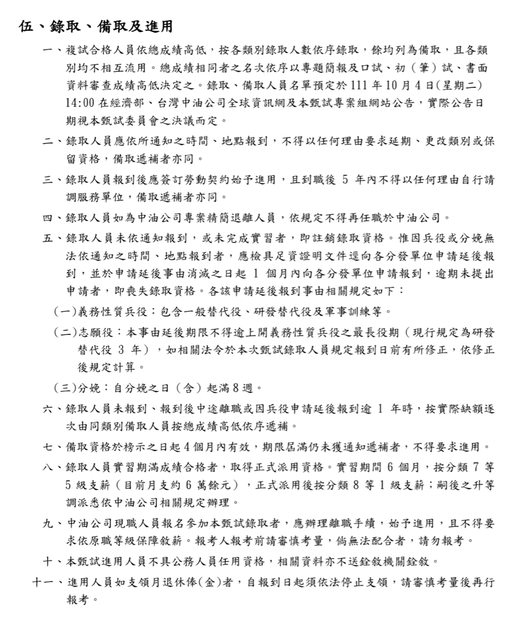 上面是111年度中油招考簡章