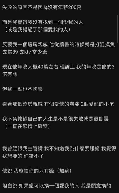 → lazarus1121 : 看他男女版的文好像大徹大悟沒想到只是催眠自己 04/30 18:58