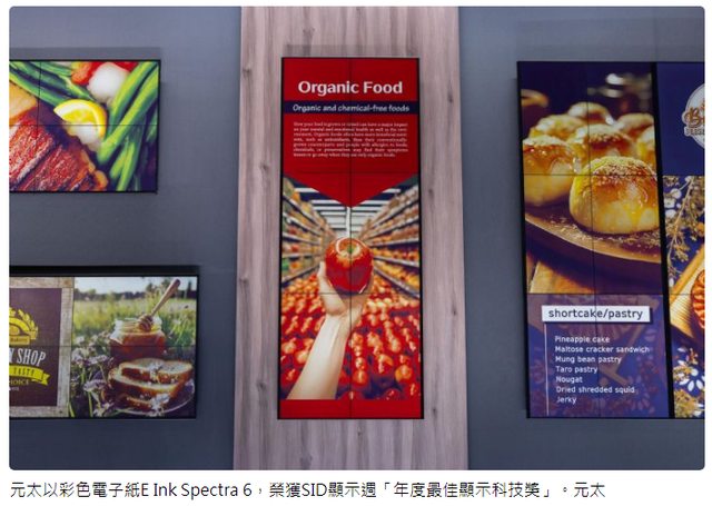 電子紙大廠元太科技表示,彩色電子紙E Ink Spectra 6榮獲由國際資訊顯示學會(