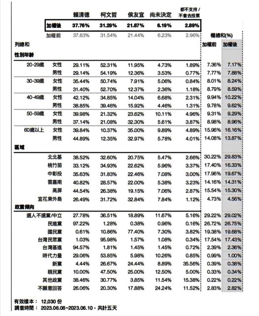 這份上個月賴清德領先柯文哲有6%的民調