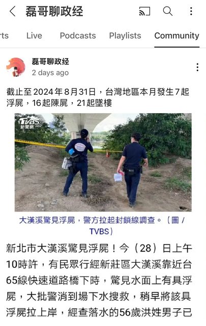 譬如上個月(九月),台灣地區發現浮屍七起、陳屍16起(這在近兩年的統計算好的,前