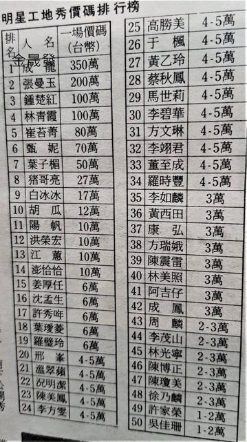 一場的價碼也超過一般人的月薪了